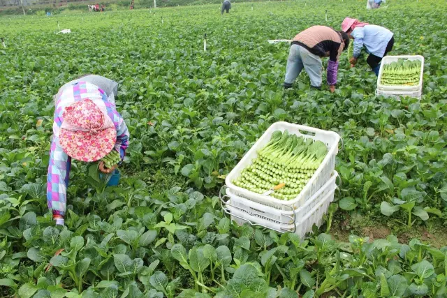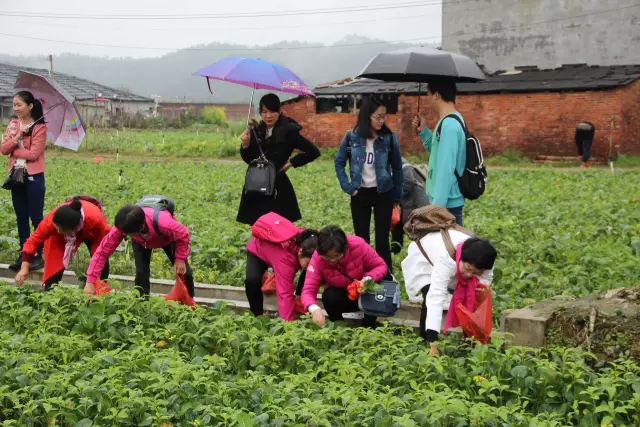 车子在蔬菜基地戛然而止,大家在工作人员的组织下,前往蔬菜基地摘菜,虽然小雨过后,初露泥泞,但是无法阻挡大家暂且归隐田园,放空一切甘做农夫的怡然自得。只见蔬菜基地鳞次栉比,专业采摘人员正在收割那一颗颗蔬菜,框里承载的是人人乐给广大顾客提供新鲜,绿色无公害以及营养价值颇高的承诺。近处绿意遍野,流水潺潺,远处云雾缭绕,让人瞬间有一种“摘菜东篱下,悠然见南山”的悠闲自得之乐趣。
