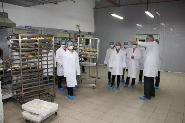 来到熟食面包加工区,余香萦绕,诱人味蕾,人人乐物流配送中心拥有合法资质(营业执照、生产许可证)、先进一流的设备、人员卫生严格规范,拥有专业的实验室进行对商品进行出厂检测。众人不时提问,吴总及工作人员悉心讲解,让顾客对人人乐的食品制作流程和配送更加放心。