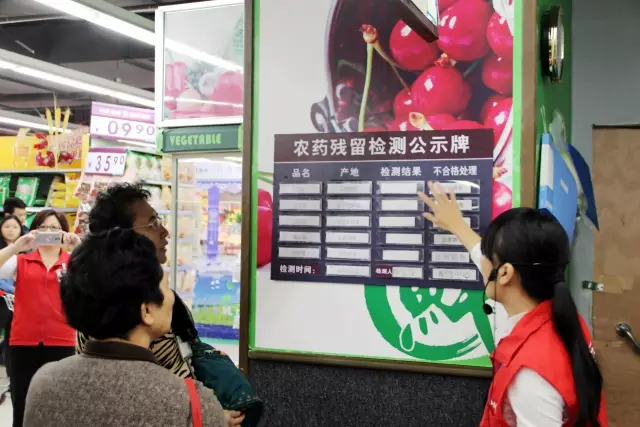 钟经理进行了肉类、禽类、果蔬类的现场讲解,大家仔细聆听,不时询问。在计量处又为大家讲解了蔬菜农药残留公示,检测,公司的蔬菜来源情况等。众人对人人乐的生鲜控制过程和来源有了一个清晰放心的了解。