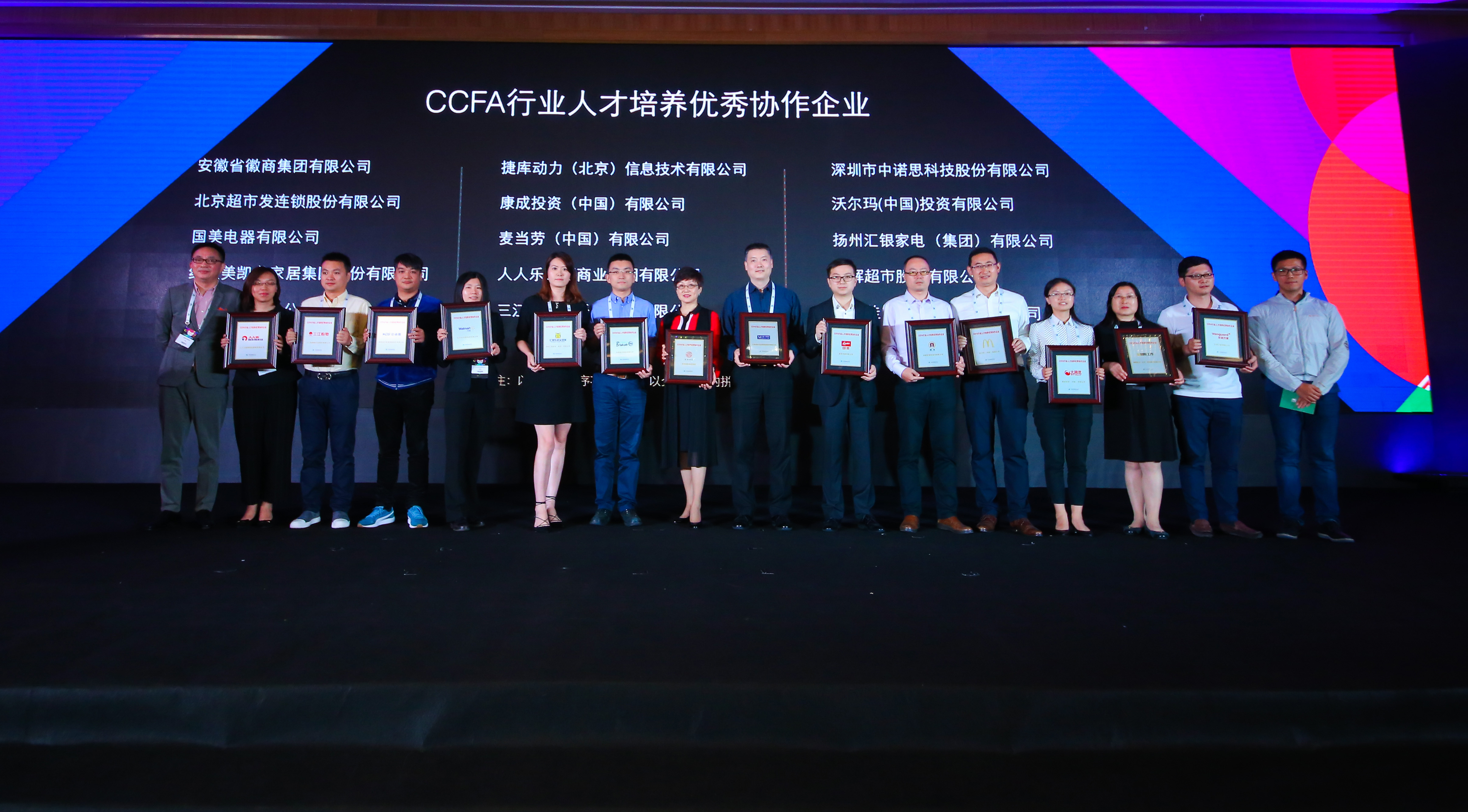 中国连锁经营协会,自2011年来与行业优秀企业共同开展行业人才培养工作,积极推动零售行业人才发展,先后已开展连锁专业教材编写、教师培训、技能认证、校企平台搭建、学生技能大赛及奖学金等工作,现已初步形成相对闭环的人才培养体系。为表彰企业为行业人才培养工作作出的突出贡献,经协会和大会组委会综合审议,最终评选出16家行业人才培养优秀协作企业,人人乐连锁商业集团股份有限公司被评选为“CCFA行业人才培养优秀协作企业”荣誉称号。