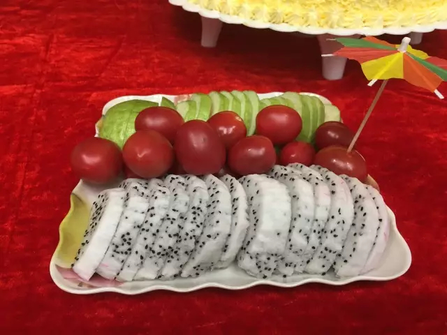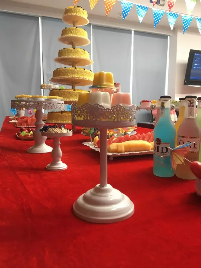 进入多功能厅生日会现场,张灯结彩,让人叹为观止,惊叹于工作人员的匠心独运与艺术构思,水果、糕点、糖果、饮料等坐落于红色桌布上,犹如奇异珍宝般让人垂涎三尺,也宛若一件件艺术品引人入胜。风扇、餐具、冰垫、靠垫、被褥等实用礼品也不遑多让,鳞次栉比。