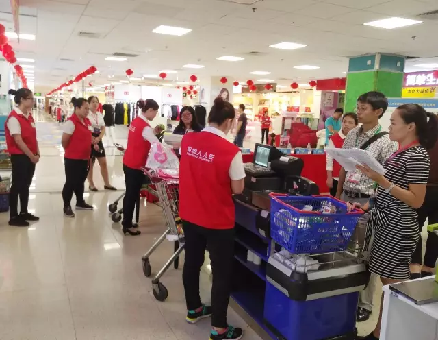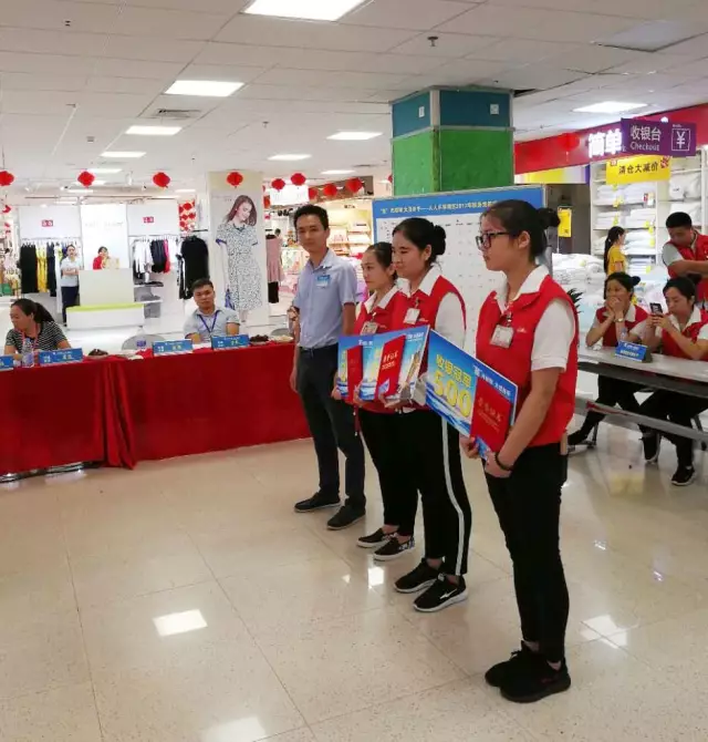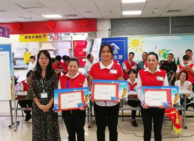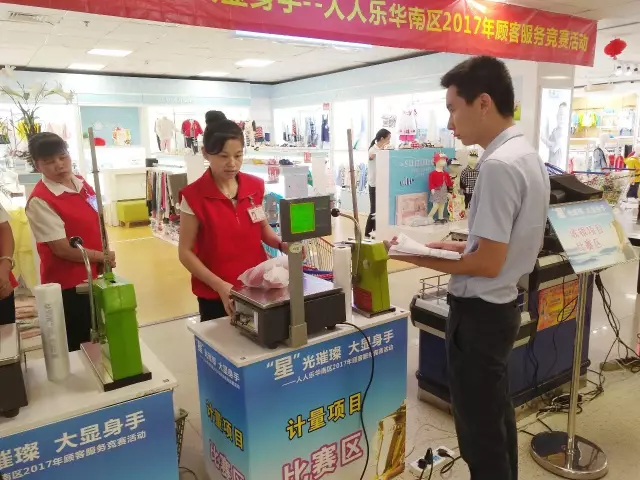 9月13日,人人乐华南区在深圳西丽店进行了一场“明星”争夺赛,来自华南各区12支代表队36名参赛人员,分别角逐收银、计量、服务三大项目的冠亚季军。