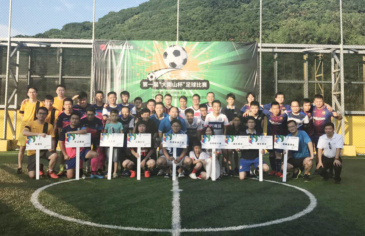 9月17日,南山街道总工会首届"大南山杯"八强争霸足球友谊赛,在大南山脚下宏明飞腾足球俱乐部开赛,来自街道机关工会、人人乐、深圳和兴通、瑞峰管理处、平江商会、谱尼测试、泛海三江、易思智科技公司8家代表队48名队员参加本次比赛。