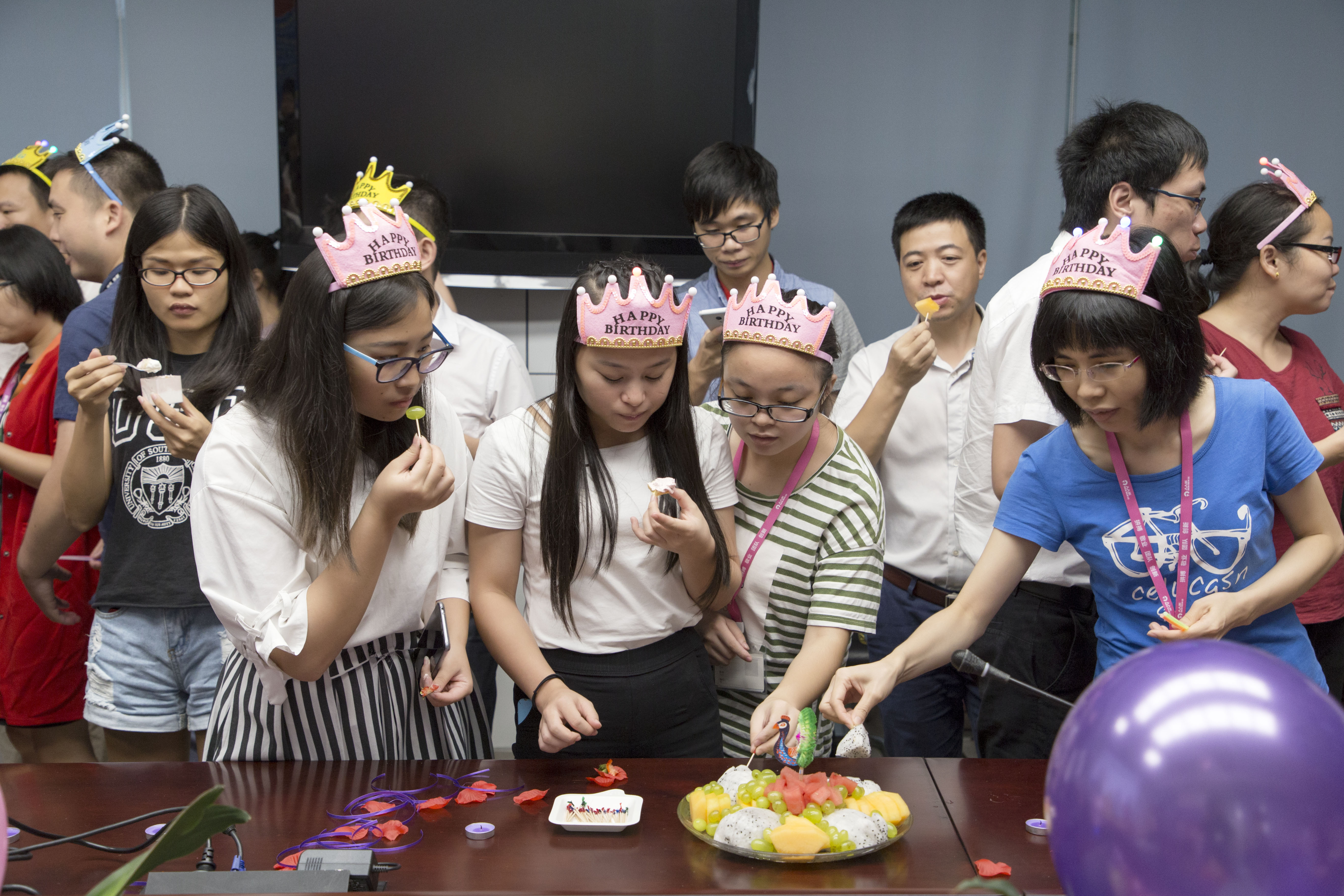 9月22日,人人乐集团第三季度生日会在总部多功能厅炫彩开展,现场水果、蛋糕、气球、精美装饰等独具匠心,装扮着生日会现场,让人感觉温馨动容,下面请跟着我们的镜像来一睹现场的精彩瞬间吧。
