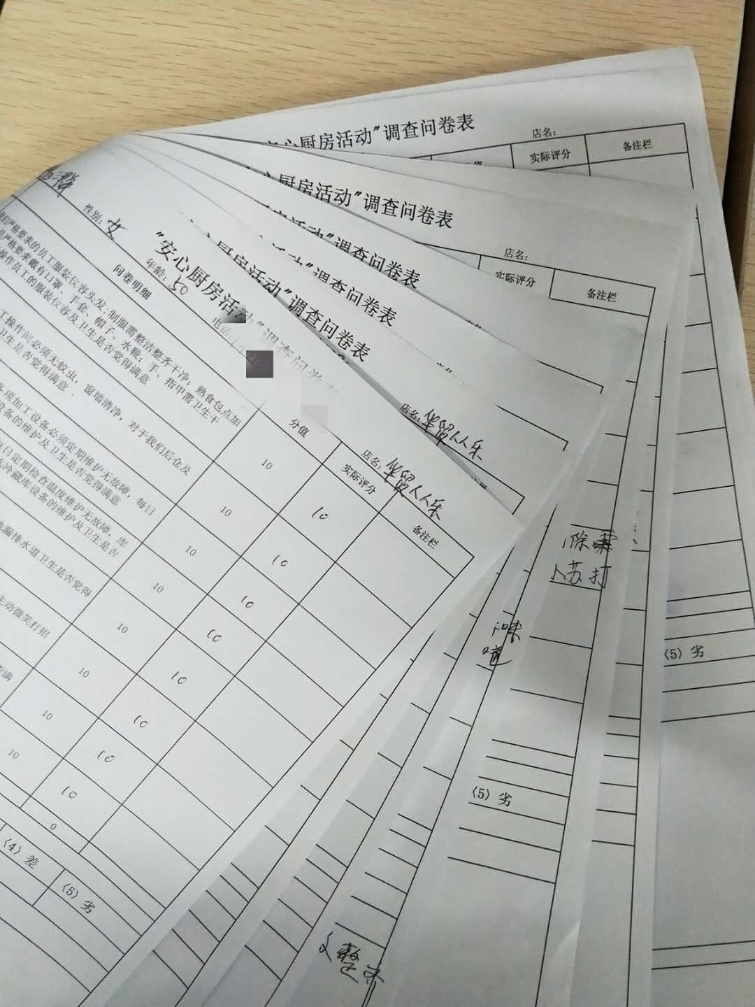 顾客们填写调查问卷表