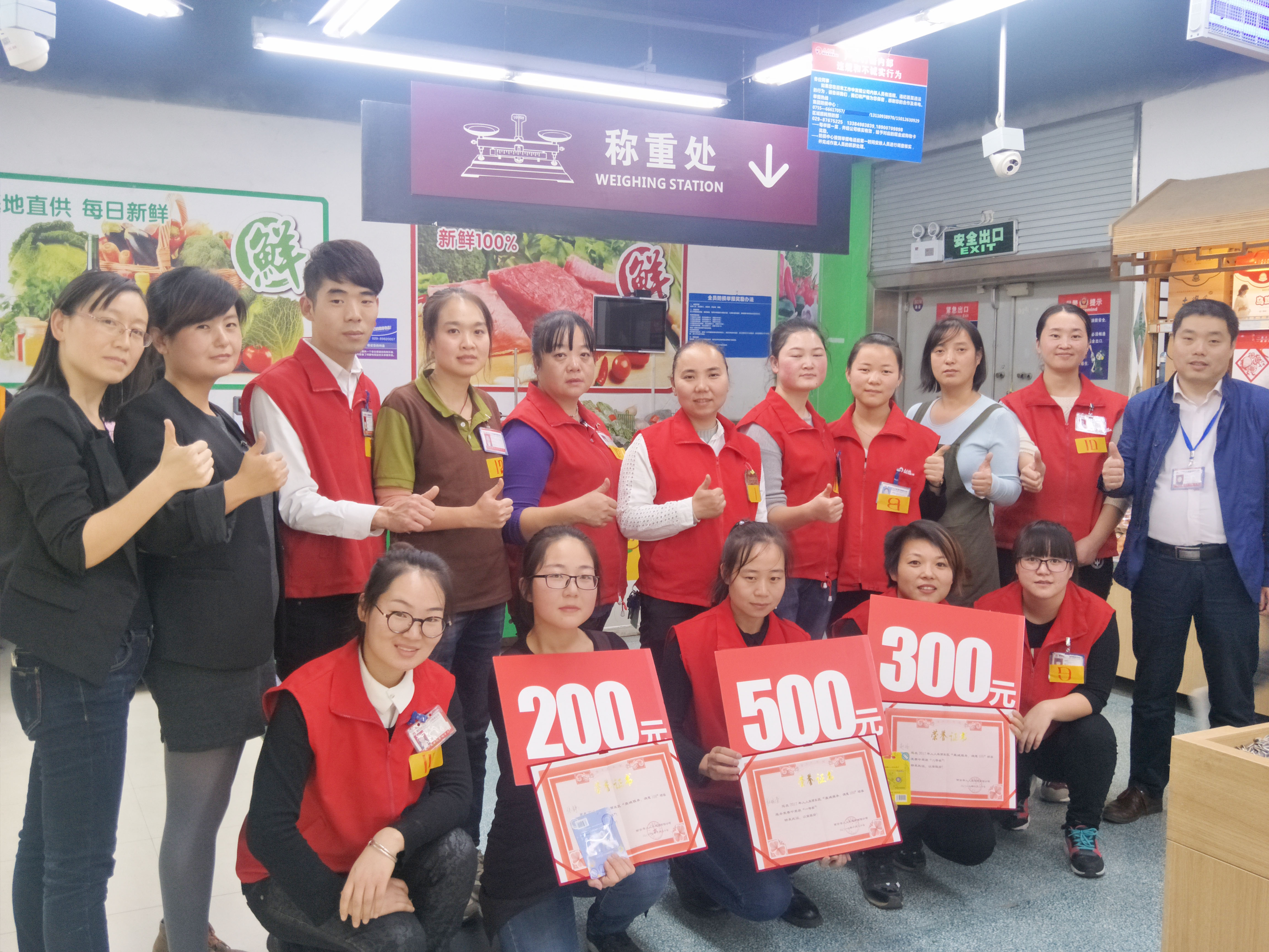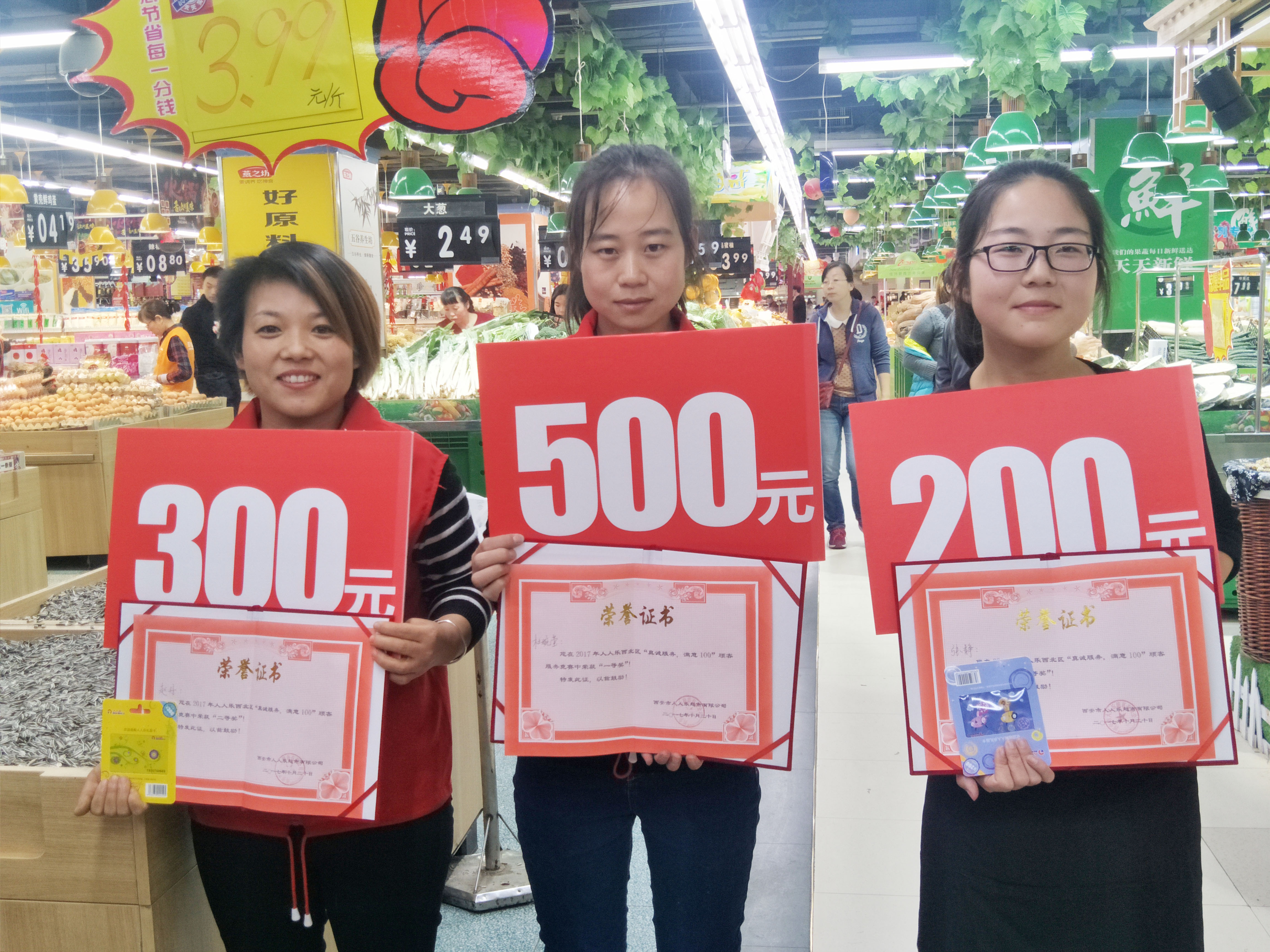 决赛以“销售竞赛成绩*30%+服务意识得分*70%”占比推算选手综合成绩,最终宝鸡高新店杜婉莹、咸阳世纪大道店赵丹、宝鸡金台大道店张静分获本次竞赛冠、亚、季军,相应每人得到500元、300元、200元人人乐购物卡的奖励。
