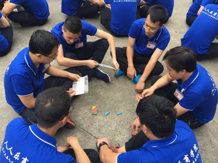 今天的拓展训练项目有分组团建、挑战99秒、社会摇,七巧板及穿越黑洞等。