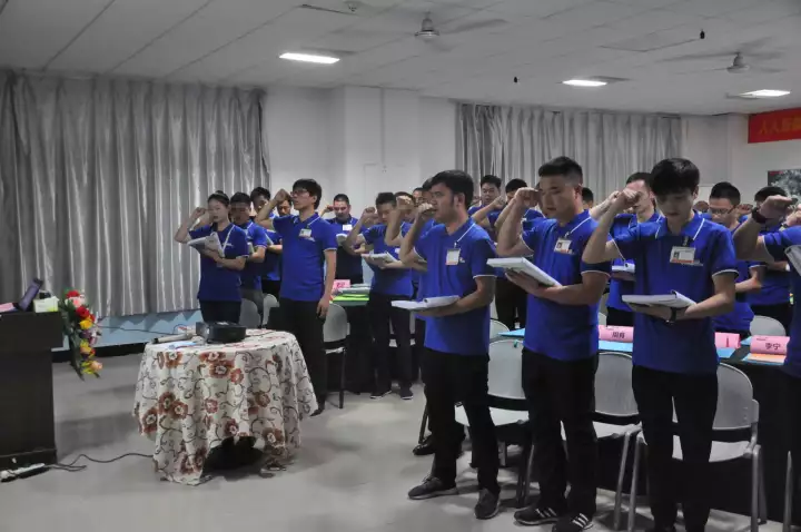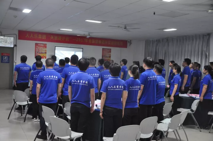 在何董事长和唐总的共同带领下,众学员起立宣誓并且齐唱《人人乐之歌》,场面庄严隆重且让人心潮澎湃。