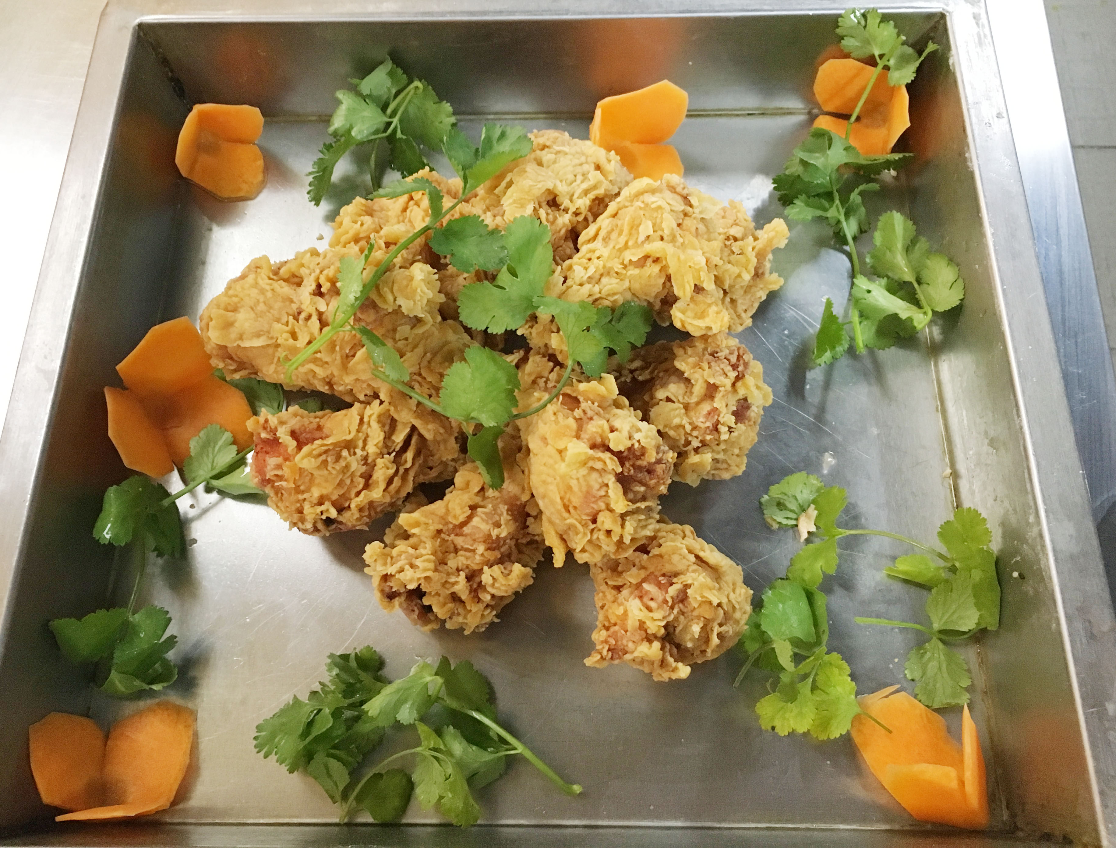 扑鼻香味,酥脆可口,原来是正在进行烤炸的测评,从腌制到烹炸不仅严格遵守卫生标准。