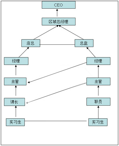 当您进入公司后,您的职业发展通道大致分为两部分:营运部门部分及职能部门部分 ,如下图: